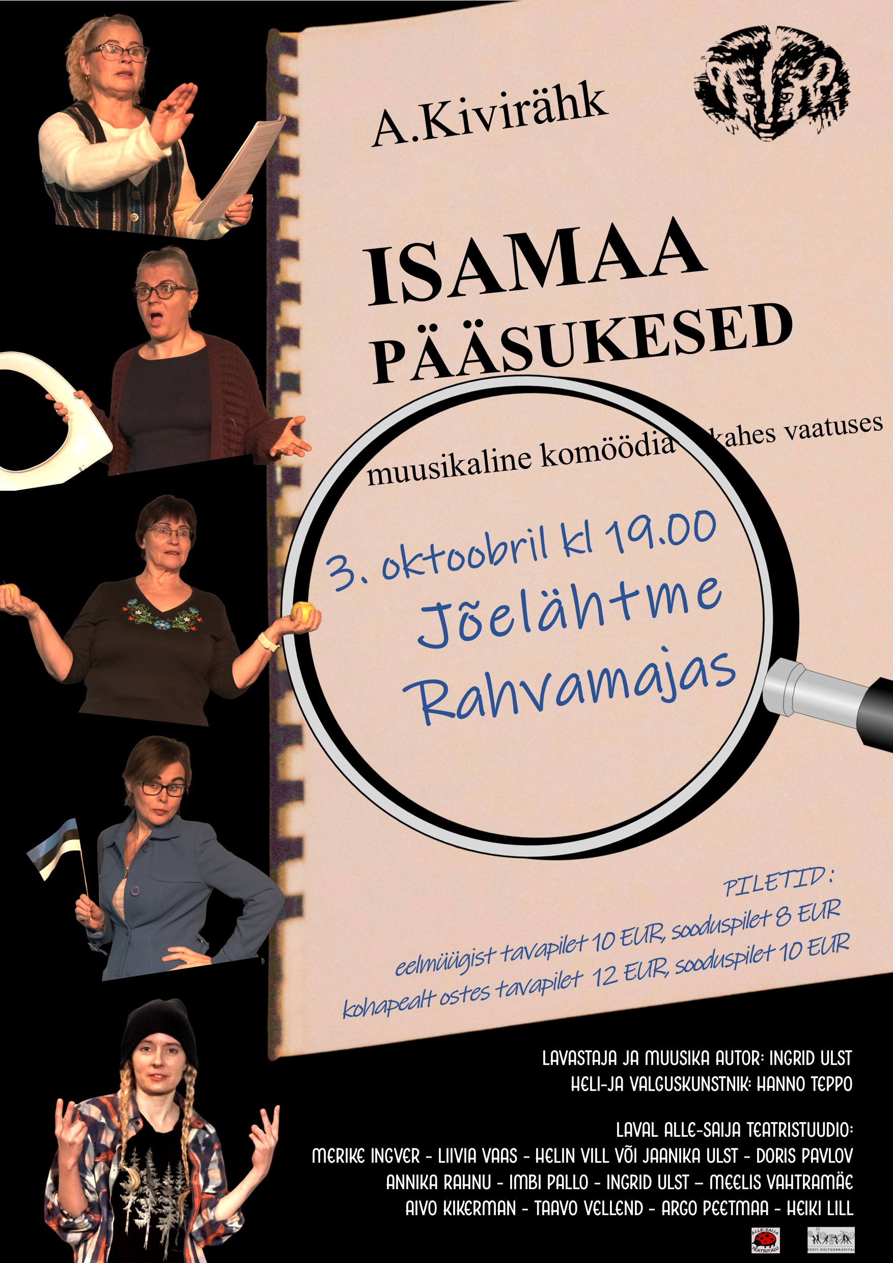 Eelmüügist 10 eur ja 8 eur, kohapealt enne etenduse algust 12 eur ja 10 eurAlle-Saija Teatritalu esitab: