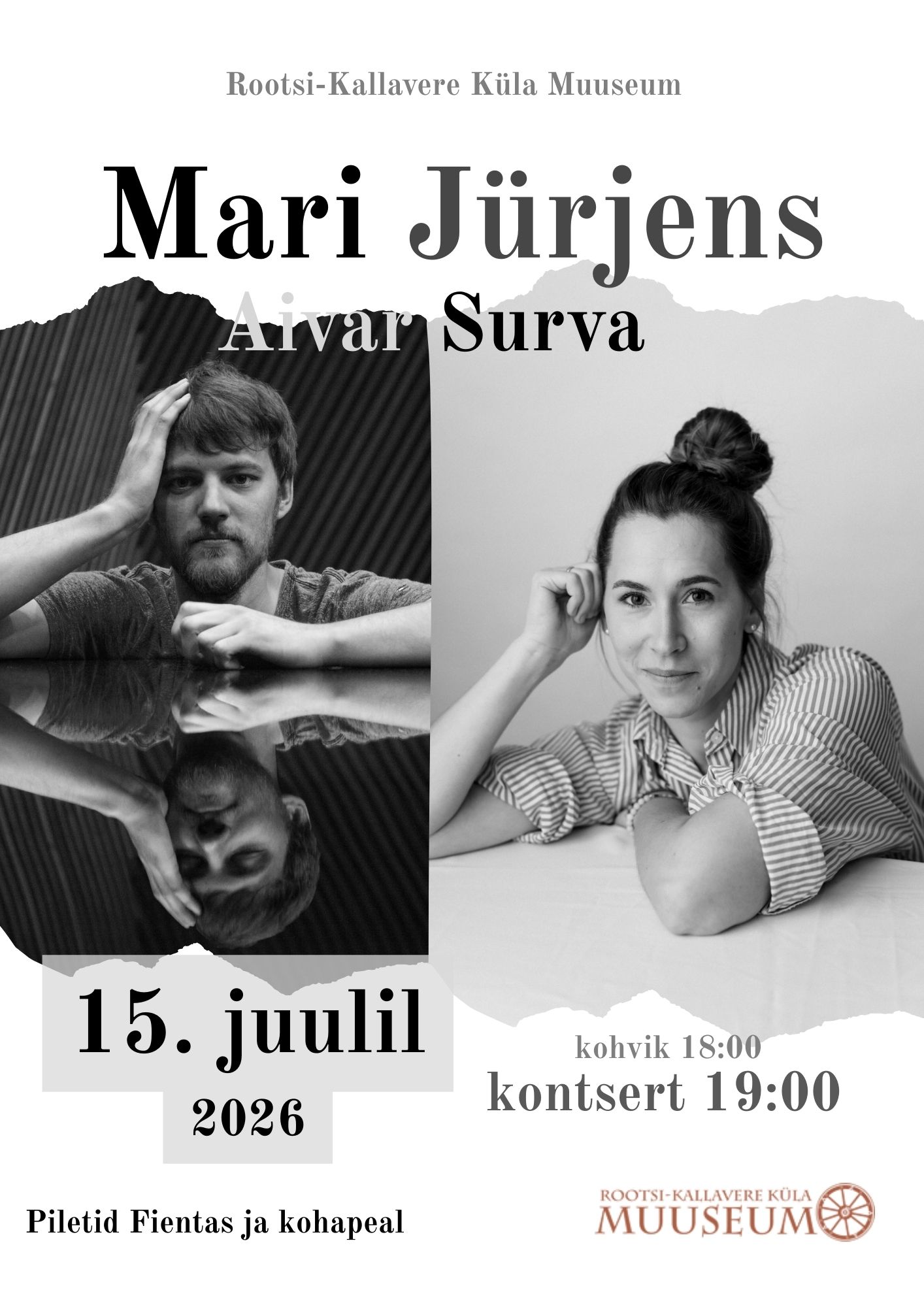 Ootame Sind 15. juulil Rootsi-Kallavere Küla Muuseumisse, kus lavale astuvad armastatud artistid Mari Jürjens ja Aivar Surva.