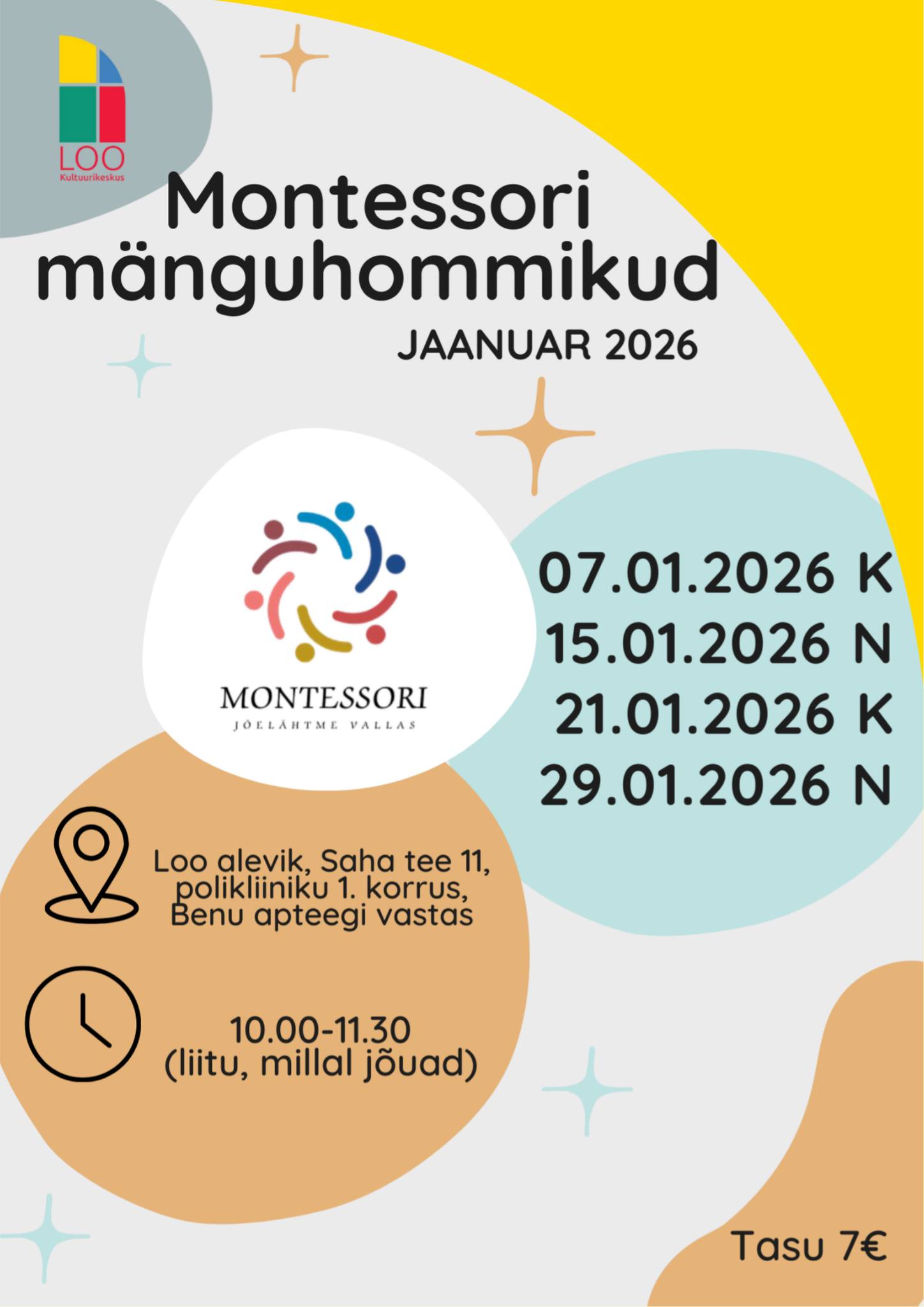 7€/5€/3€Montessori mänguhommikud jätkuvad jaanuaris 2026!