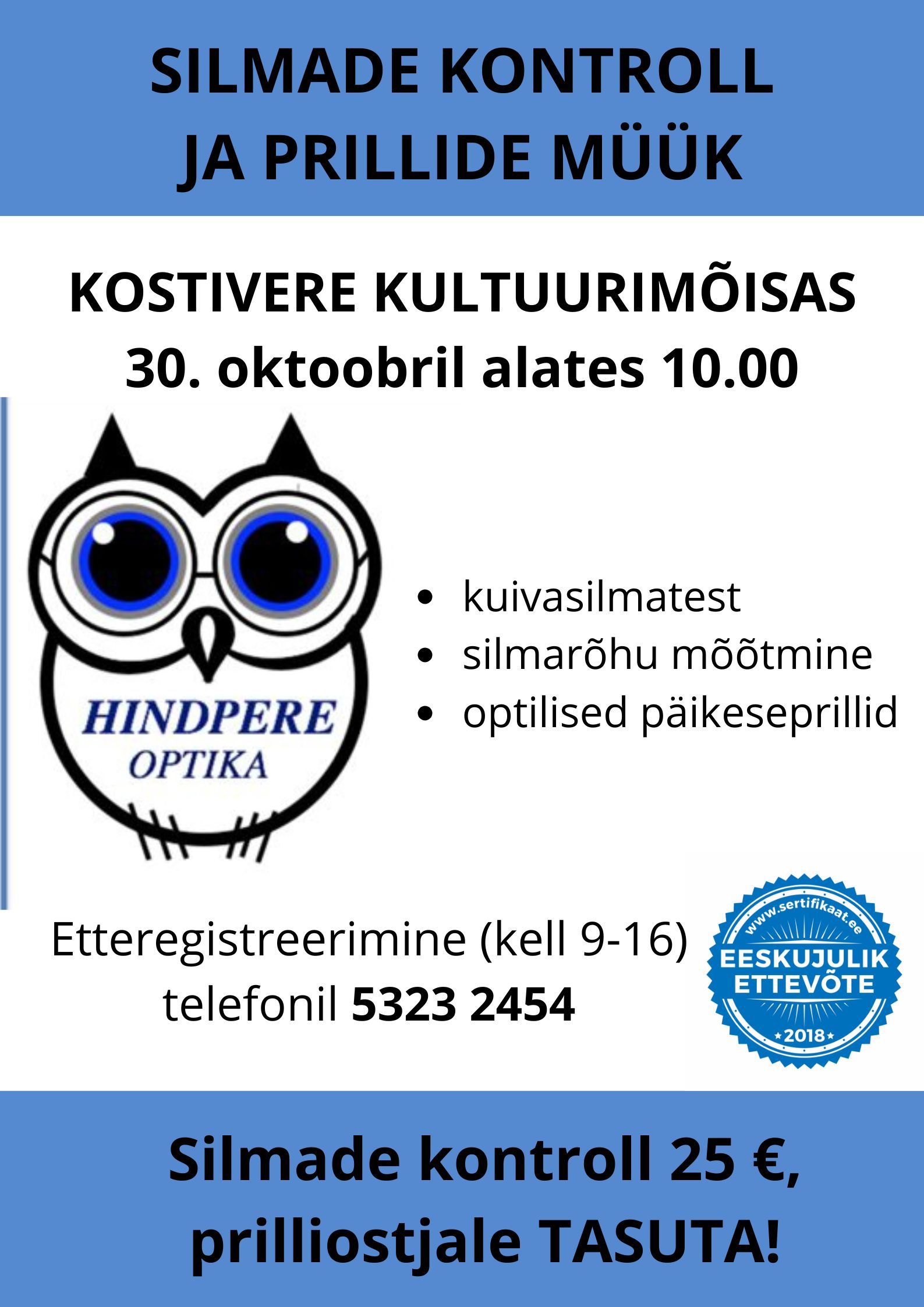 Silmade kontroll 25 €, prilliostjale tasuta
