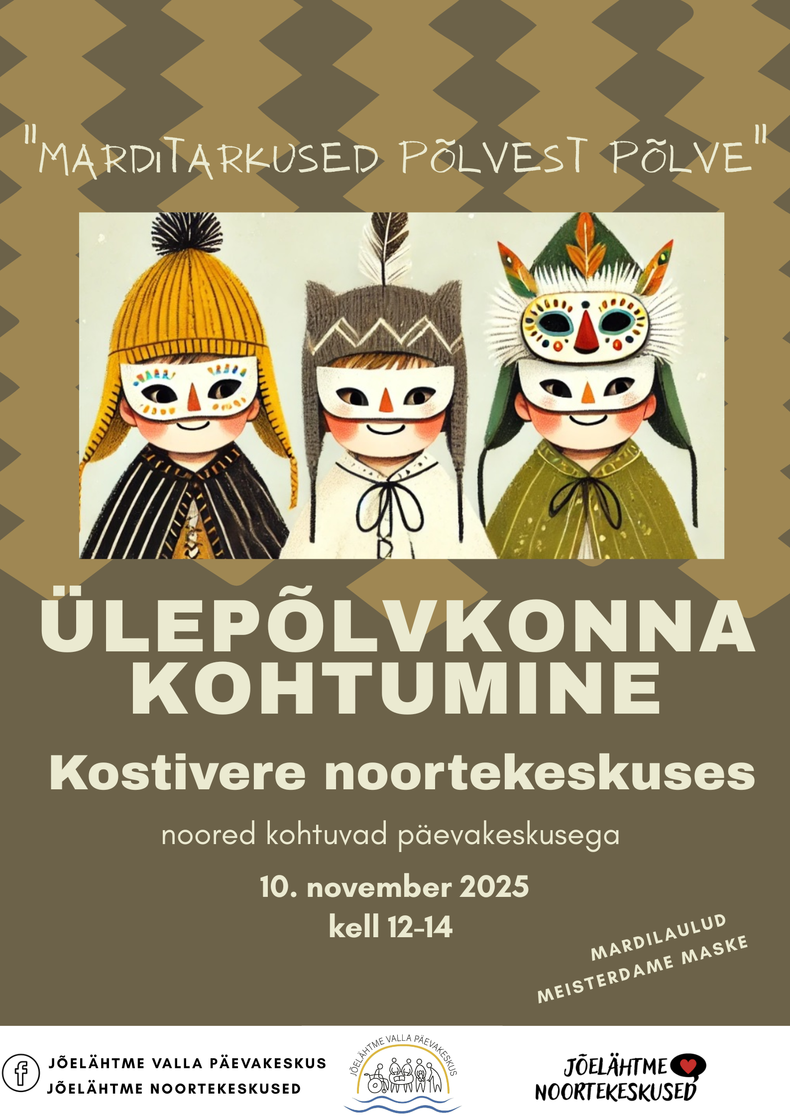 tasuta10.-16.11.2025 toimub noorsootöönädal mille raames kohtuvad Kostivere noortekeskus ja päevakeskus. Lauldakse mardilaule ning meisterdatakse maske.