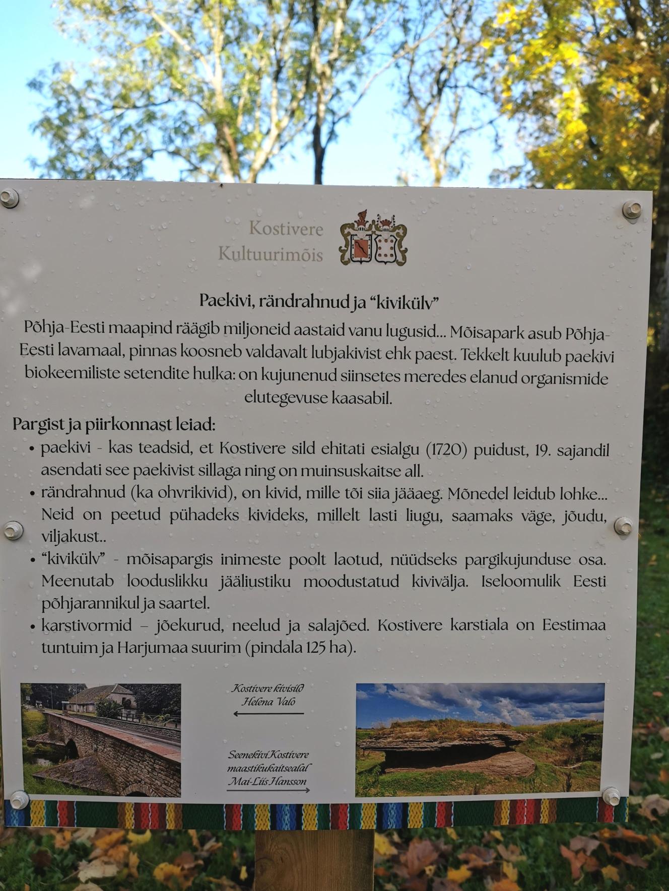 Mõisa tee 2, Kostivere, 74204 Harju maakond (kaart)Kostivere mõisapark on ajalooline, unikaalse looduse ja kultuuripärandi kooslusega. Õpperada aitab kohalikku rikkust säilitada ja tutvustada. Rajal asetsevad kaks suuremat infostendi, üks Kostivere Kultuurimõisa, teine Kostivere Kooli hoovil, mis tähendab, et avastamist saab alustada endale sobivas asukohas. Mõisapargis asetsevad kaheksa väiksemat stendi, mis käsitlevad kohalikku loodus- ja elustikuteemasid:
